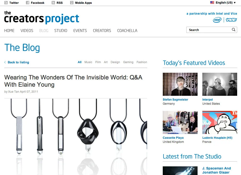 The Creators Project is a global celebration of art and technology. Founded by a revolutionary partnership between Intel and VICE, The Creators Project supports visionary artists across multiple disciplines who are using technology in innovative ways to push the boundaries of creative expression.